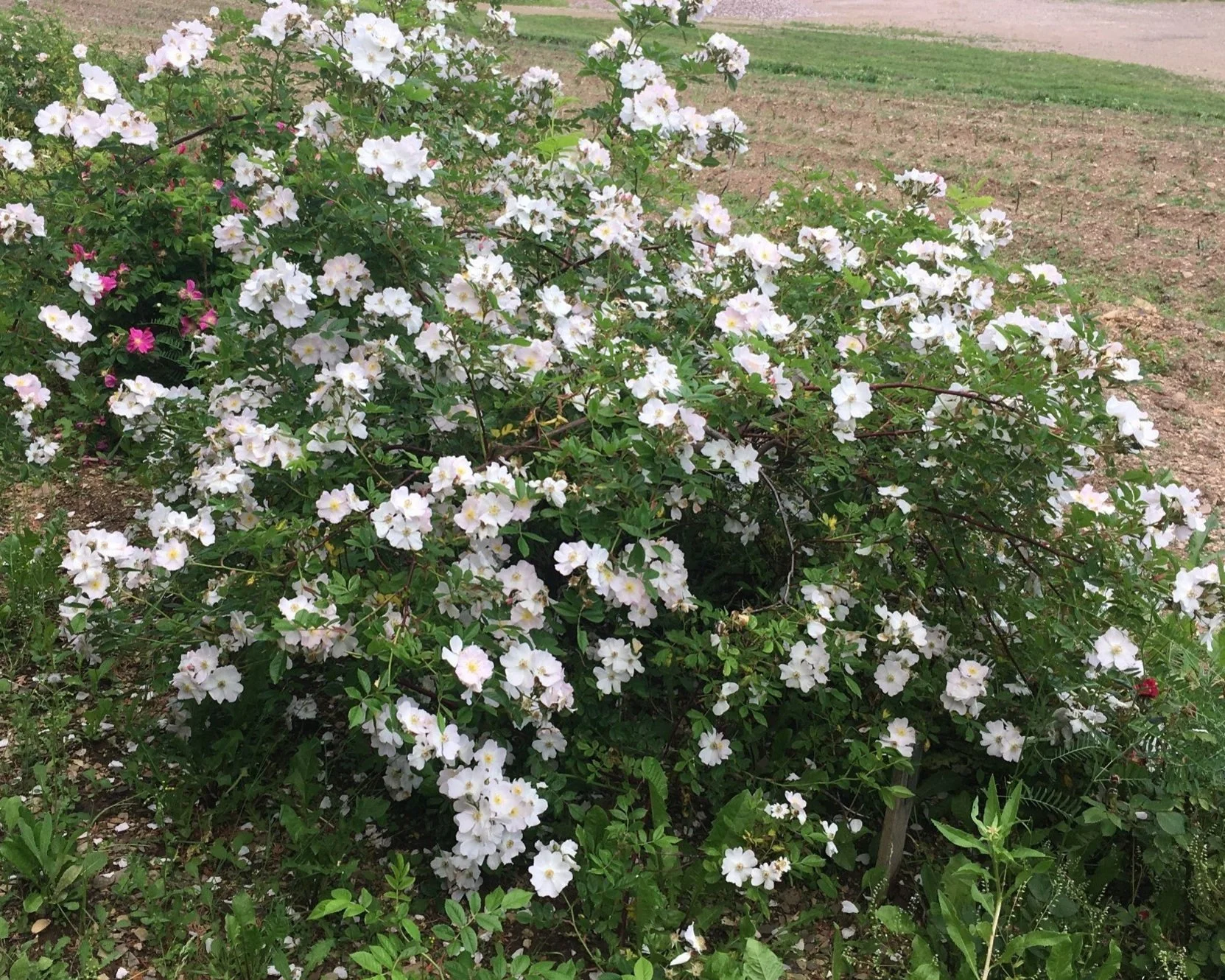 This is a rose that has not been widely produced or distributed, having been used historically as a hardy rootstock for budded roses. We received cuttings and have been impressed by its vigour, toughness, and show. It produces masses of bloom. The single flowers open blush pink, fading to pure white with yellow stamens. Foliage is heavily textured. This cultivar is extremely disease resistant and lends itself well to growing on a trellis.