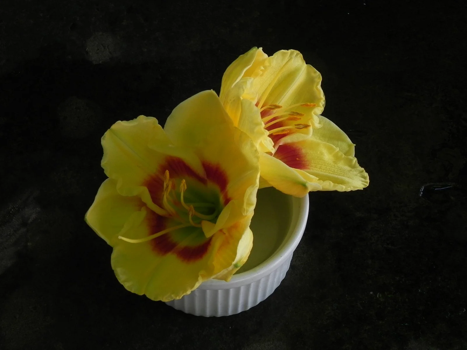 A Corn Hill selection chosen from unnamed seedlings sent by Darrel Apps. Bright yellow full petals with a red eye zone. Best bloom in full sun but tolerates partial shade. Mid-late summer bloomer.